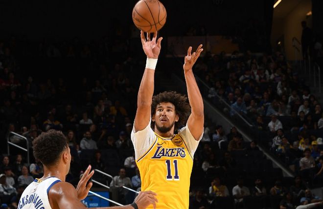 本场比赛中,湖人虽然输掉了比赛,但是球队的替补中锋贾克森-海斯(Jaxson Hayes)的表现还是颇有亮点的。海斯全场出场16分29秒,投篮8中4,三分线外1中0,罚球1中0,得到了8分6篮板2助攻的数据,还有1次犯规,正负值为+3。海斯在进攻端也是展现出了一定的篮下得分能力,他也是抓住了有限的出手机会得到了一定的分数,他的得分能力似乎也并没有那么糟糕。除此之外,海斯在传球和策应方面也能够起到一定的效果,他在防守端的表现也算是中规中矩,他在身体天赋和运动能力方面的优势也是相当明显的。海斯在攻防两端的表现都是非常积极的,他也是展现出了很强的活力,他也算是球队在这场失利中的一些亮点了。