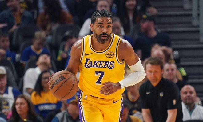 这个问题就是,这支紫金军团的快攻能力属实堪忧。首场比赛对阵太阳,湖人利用快攻得到6分;次战对阵勇士,湖人快攻得分仅5分,两场比赛,紫金军团快攻方面被打了个11比42……一方面,这说明这支湖人的防守侵略性不够,无法有效形成转换进攻的机会,另一方面,这帮角色球员的控运能力确实堪忧,布朗尼在转换进攻回合将球运到前场结果失误的画面,简直就是全队的一个缩影,除了第一场的里夫斯和第二场的文森特,似乎谁运球都让人感觉不那么放心。